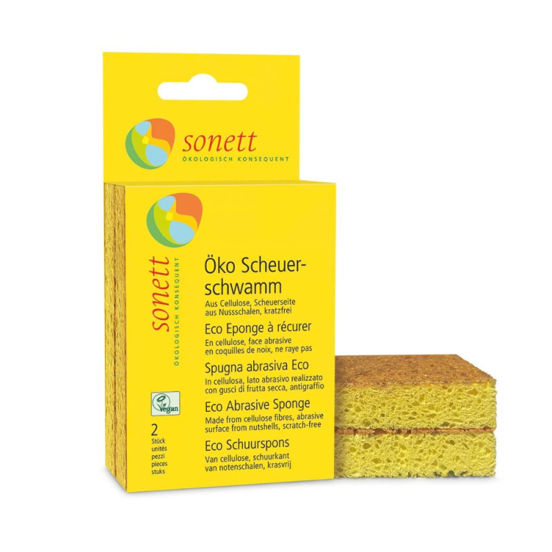Ekologická abrazivní houbička. Na mytí nádobí. Z celulózy a skořápek ořechů.